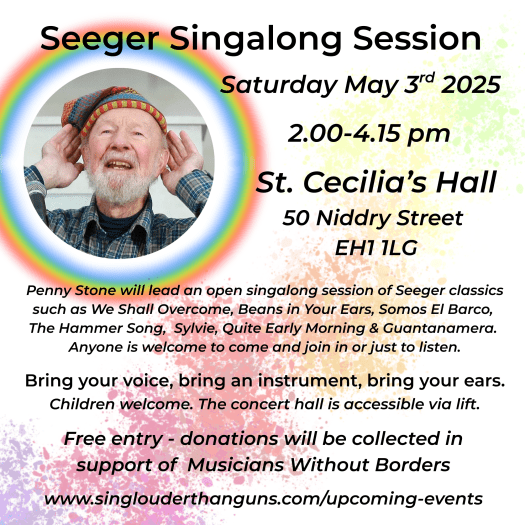 Celebrate Pete Seeger’s Birthday with a singalong and singaround session led by Penny Stone. Free entry, with donations going to support Musicians Without Borders.