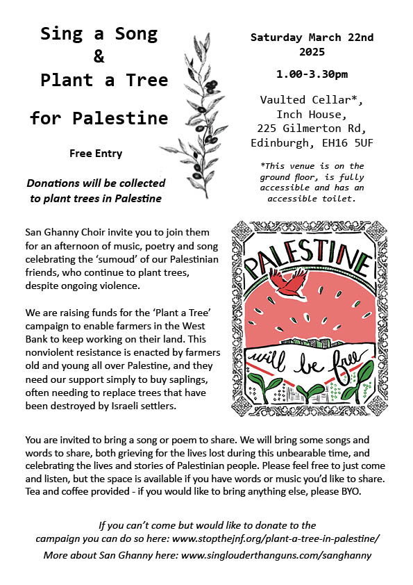 Sing and Plant a Tree for Palestine, March 22nd, 2025