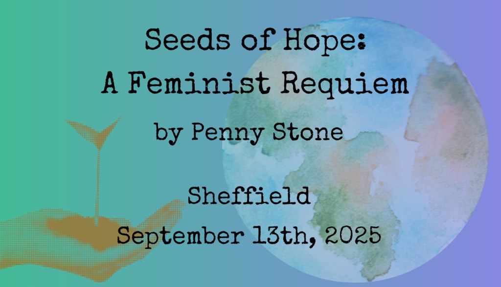 The Seeds of Hope Requiem was written by Penny Stone in memory of her amazing feminist mum, Sue Stone, and brings together the words of women from all over the world, spanning from 575 CE until the present day. The requiem is sung in 18 languages and combines a variety of community choir, semi-chorus and soloist acapella singing with cello, violin, percussion and French horn. There are also some singing-together choruses for the audience to join in with that will be taught at the beginning of the concert. There is space in this piece for singing and listening, for sadness and joy, and for connection as well as time spent with our own individual feelings.